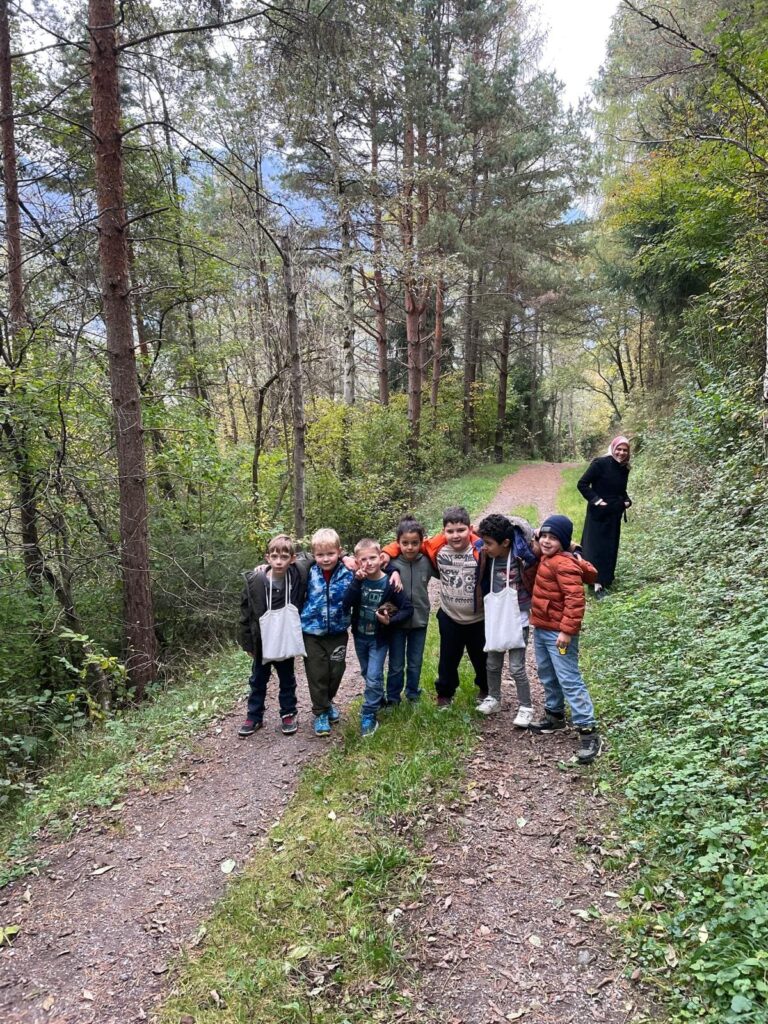 Die Vorschulklasse sammelt Schätze im Wald
