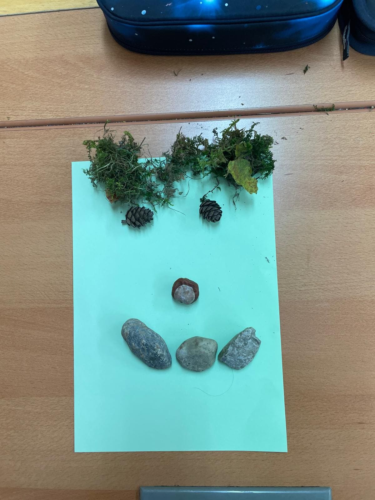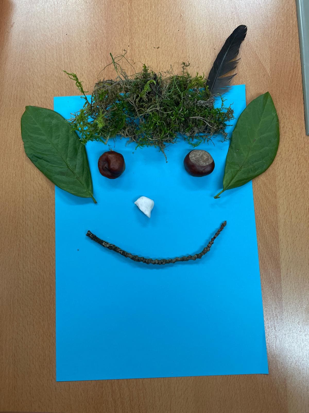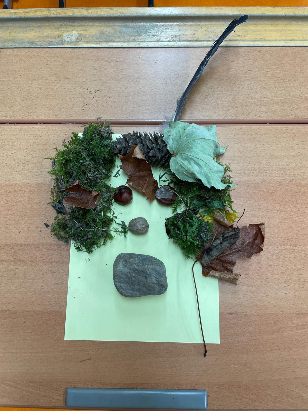 Die Kinder der Vorschulklasse sammelten eifrig Schätze des Waldes und gestalteten mit den Materialien lustige Gesichter!