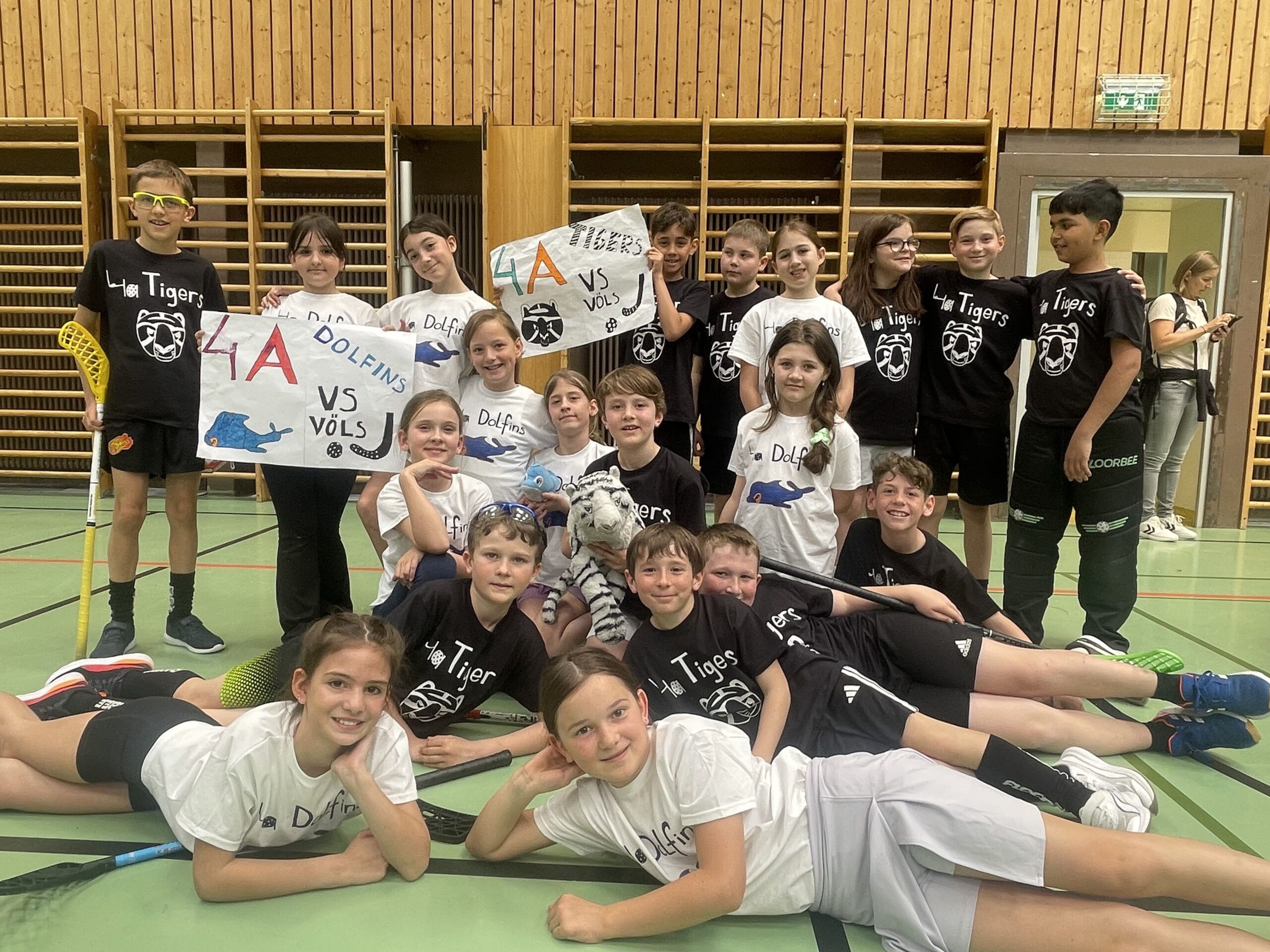 Am 30.4.2026 machte die 4a-Klasse bei der Floorball-Schulmeisterschaft in Hötting- West mit. Voll motiviert, gut trainiert von Elternvertreter Markus  und ausgestattet mit selbst gestalteten wunderschönen Dressen starteten die Kinder ins Turnier. Am Ende schaute sowohl für das Mädchenteam als auch für das Bubenteam der sehr gute 5. Platz heraus! Wir bedanken uns bei Markus Kröll für den Einsatz und die viele Zeit für Trainings, bei den Eltern fürs Anfeuern, bei Marias Opa für das Drucken der Dressen und bei Markus und Christian für die Betreuung beim Turnier!