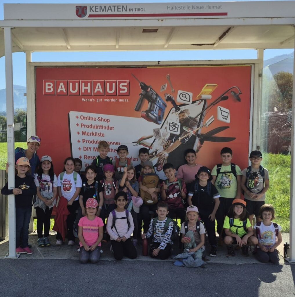 In der zweiten Schulwoche beschloss die 2a Klasse, anstatt die Schulbank zu drücken, lieber das tolle Wetter an der frischen Luft zu genießen. Nach einem ansehnlichen Marsch von der Schule nach Kematen, konnten sich die Kinder noch am Spielplatz austoben. Zurück zur Schule fuhr die lustige Truppe dann allerdings doch lieber mit dem Bus. Wir haben den Ausflug sehr genossen!